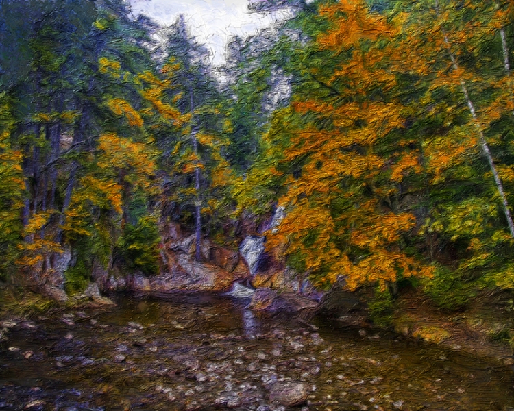 Planning a trip to be there for the “peak” is difficult. A dry Summer, a late Fall, or a passing tropical storm, and the best made plan is suddenly all for naught. But that’s when I get to take a little ‘artistic license’ and use my imagination to create an image the way I see it in my mind’s eye, even if Mother Nature wasn’t in a cooperative mood when I stopped by to admire the view. The scenes in this collection are from settings in Vermont, New Hampshire, and Maine.
